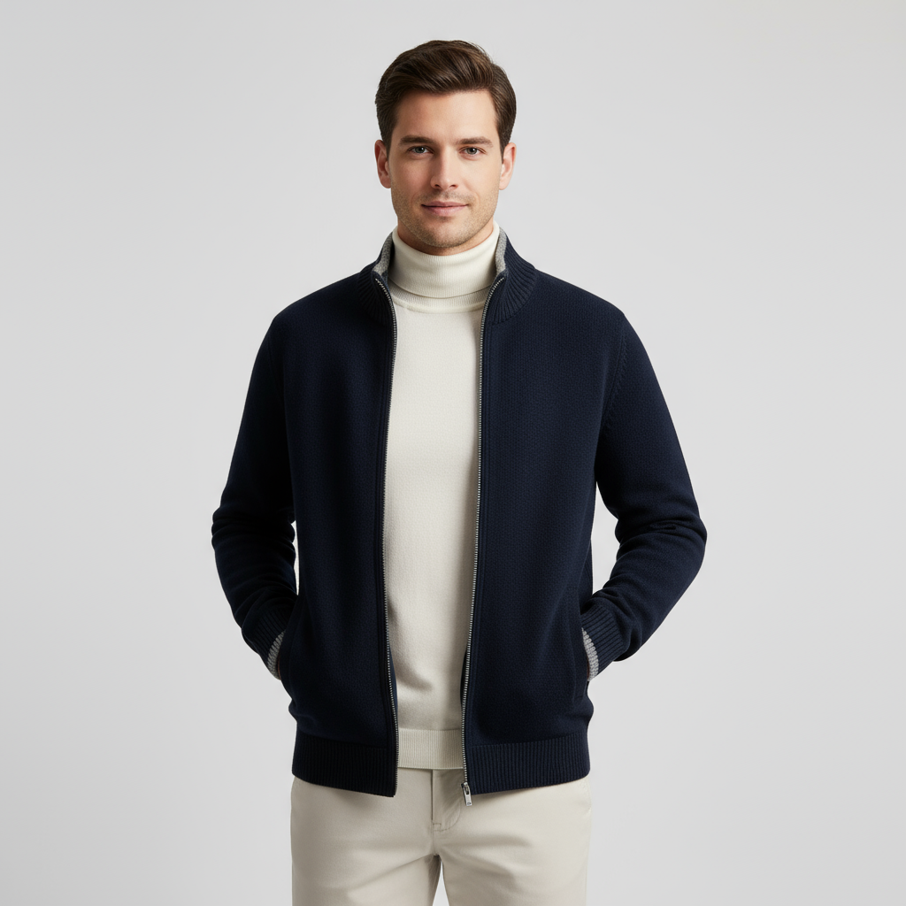 Imaginez un vêtement qui caresse votre peau et vous accompagne avec élégance toute la journée. Que vous alliez au travail, en voyage ou que vous profitiez du week-end, ce gilet zippé en maille vous assure une allure élégante et un confort absolu. Une combinaison parfaite d’élégance et de praticité, pensée pour l’homme qui avance avec assurance et style.